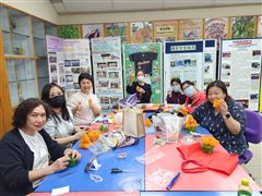 2023年4月26日家長導師──陳惠賢女士 (3A 黃佳怡家長) 耐心指導家長製作和風頭飾DIY。