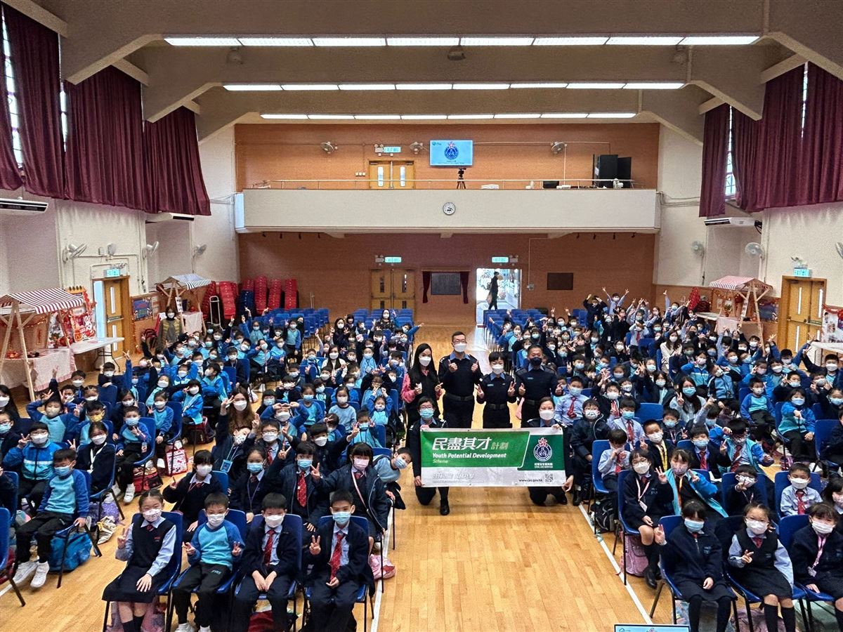 民安隊訓練主任和長官帶領全校學生認識國旗和國歌,也提示學生升旗時應注意的禮儀,並即場示範完整的升旗流程,學生都有認真學習和聆聽。