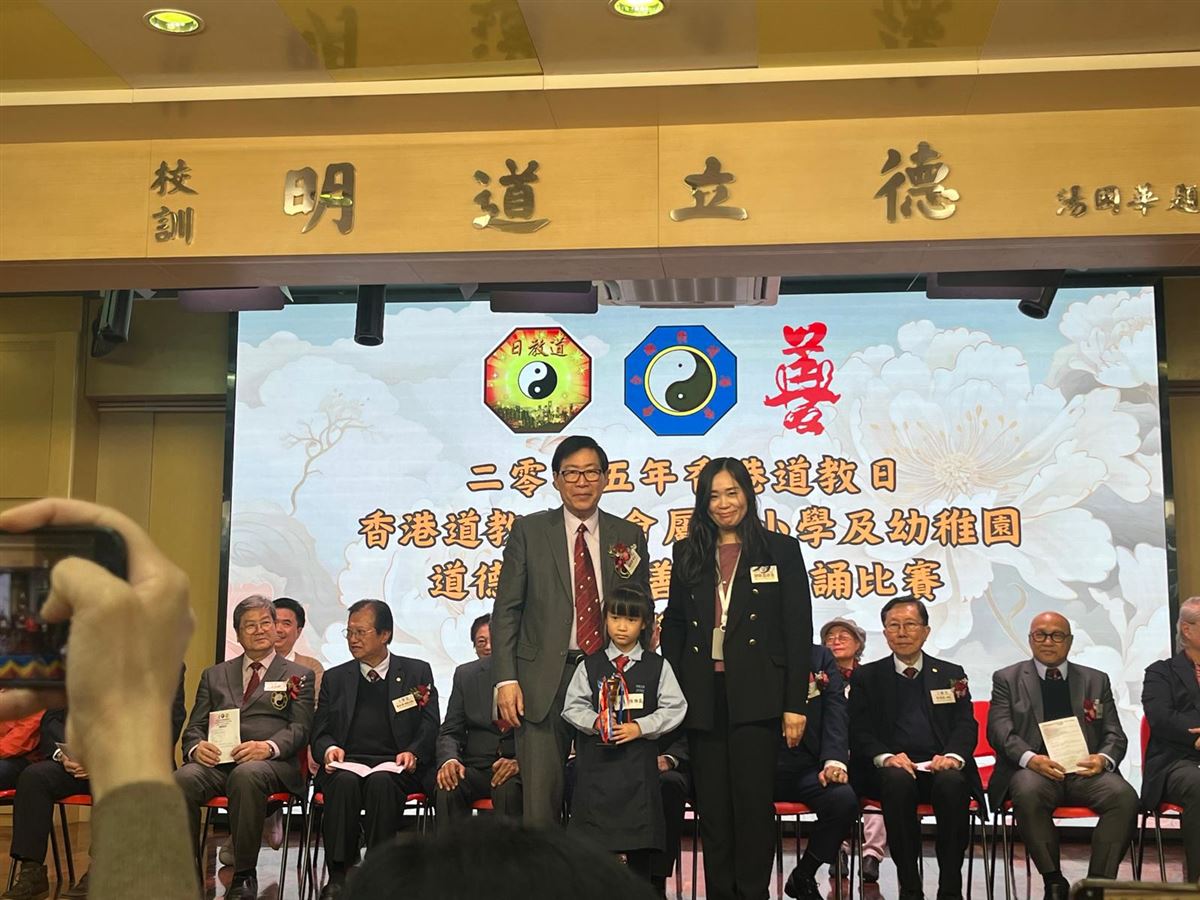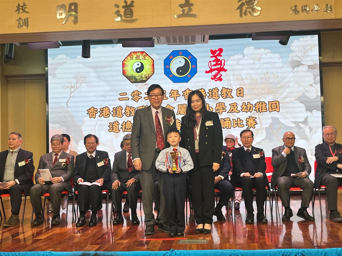 本校為提高同學對道德經的欣賞及朗讀興趣,派出了2A駱以謙、陳雅儀、5C陳可言、6A王鋕揚於2025年2月18日參加「香港道教聯合會會屬中小學暨幼稚園道德經(省善盃)朗誦比賽」。四位同學表現優異,榮獲優異獎項,實在可喜可賀!