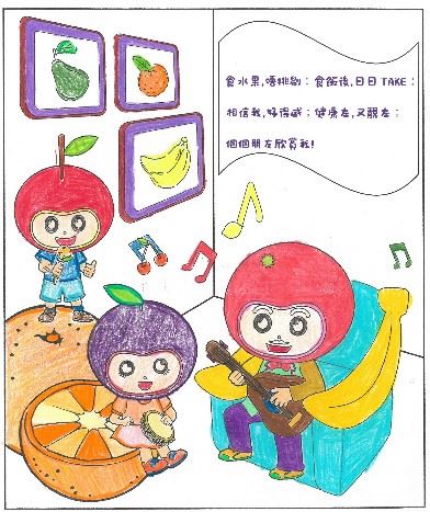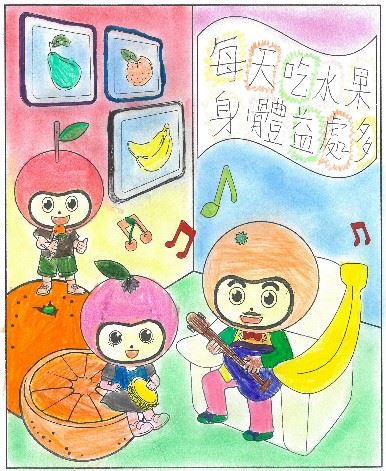 食水果能減低患上多種慢性疾病的風險(例如心臟病、中風及某些癌症),有助保持身體健康。本校舉辨水果月填色及標語創作比賽,讓同學關注吃水果的重要及培養同學每天進食水果的習慣。