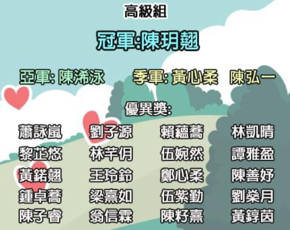 6A 林凱晴 於「愛的傳遞」全港小學生填色及繪畫比賽取得優異獎