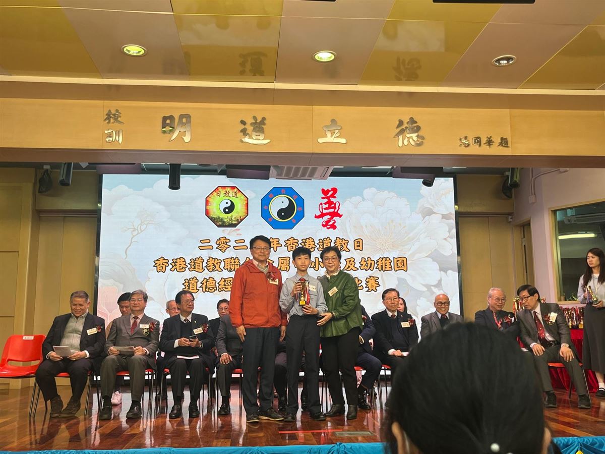 本校為提高同學對道德經的欣賞及朗讀興趣,派出了2A駱以謙、陳雅儀、5C陳可言、6A王鋕揚於2025年2月18日參加「香港道教聯合會會屬中小學暨幼稚園道德經(省善盃)朗誦比賽」。四位同學表現優異,榮獲優異獎項,實在可喜可賀!